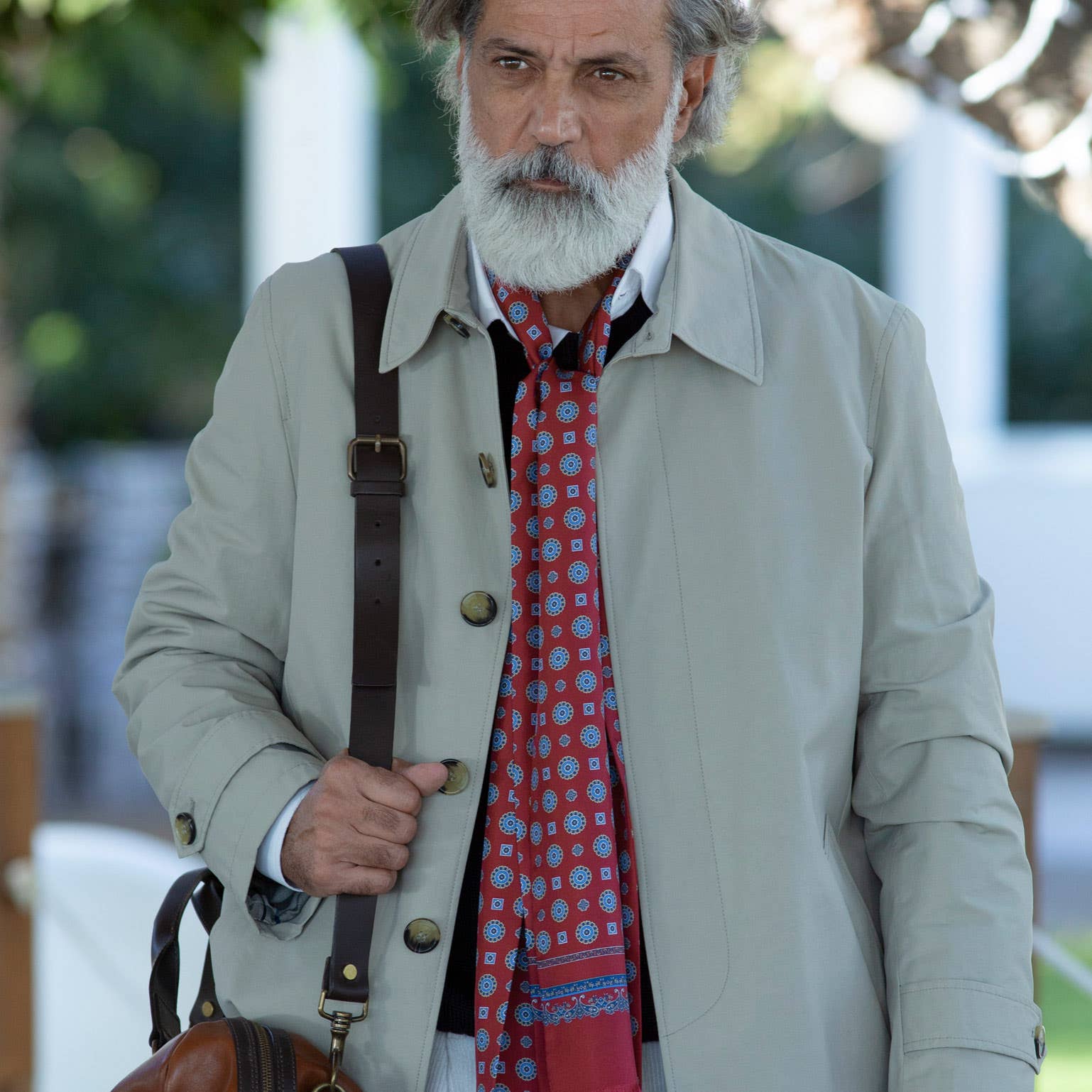 Inspired by the timeless beauty of the Italian Renaissance, this narrow scarf features a refined medallion print, evoking the ornamental artistry of Sandro Botticelli’s era.