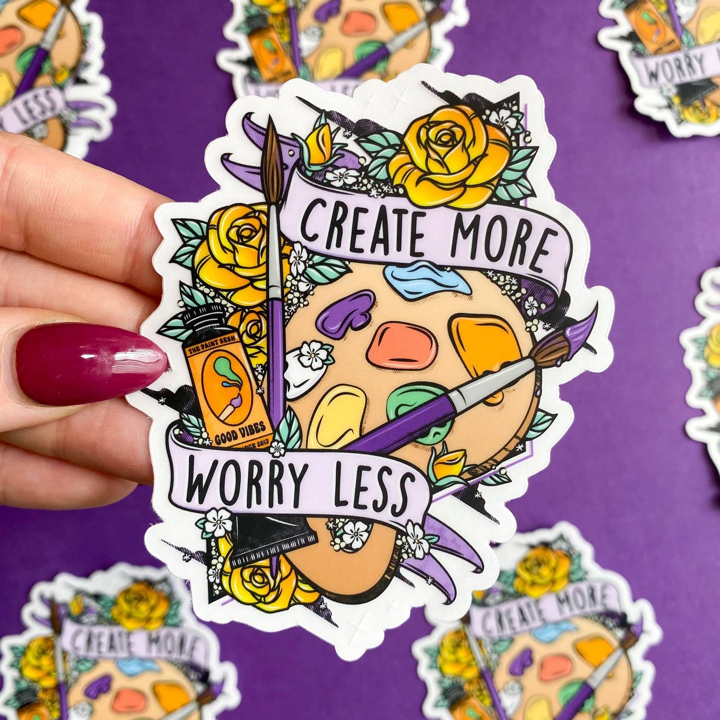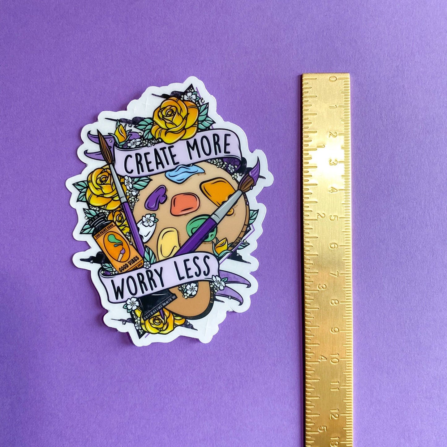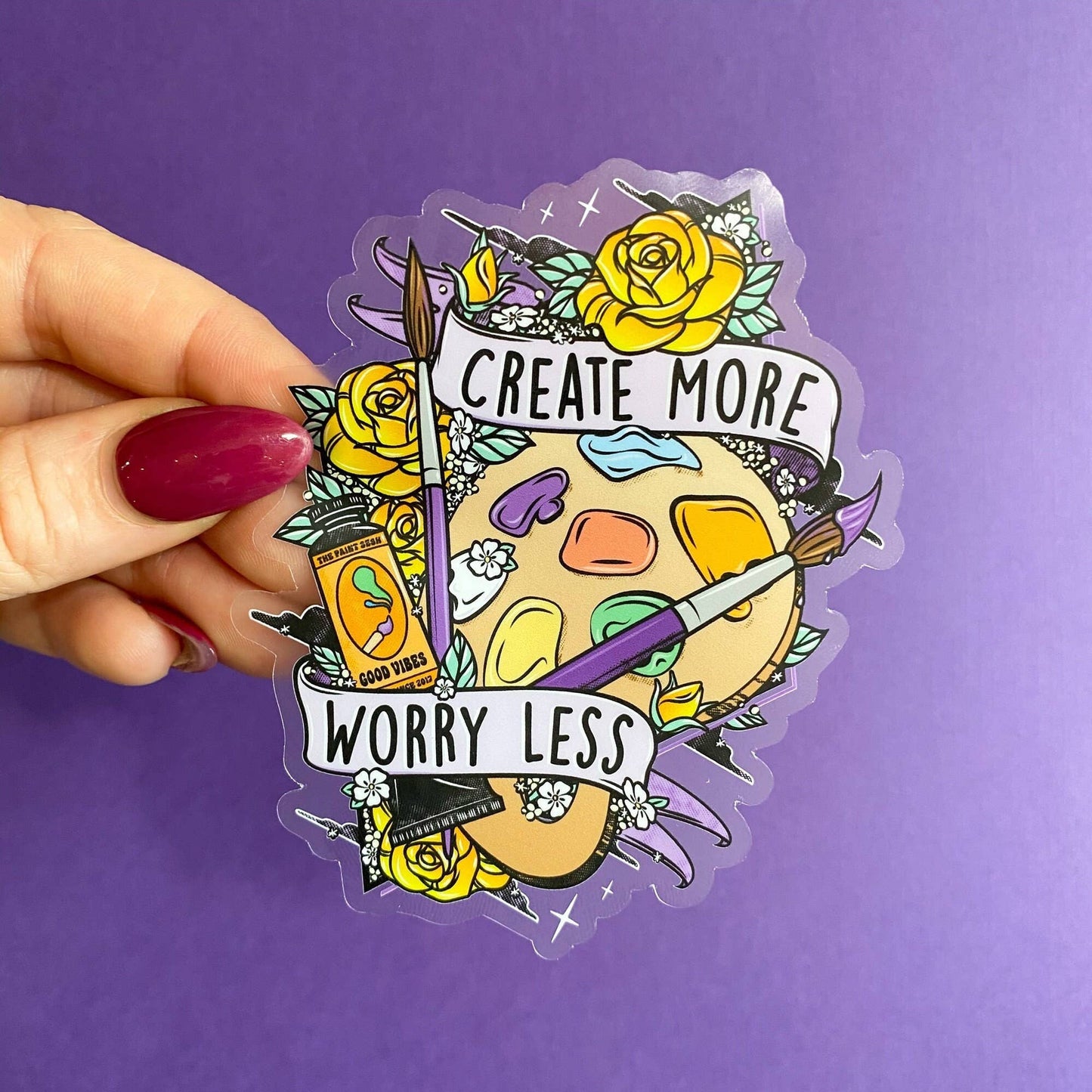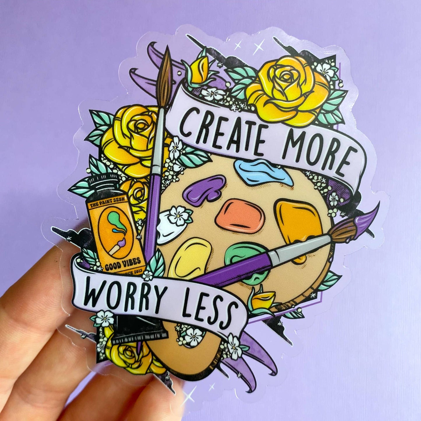 Create More Worry Less Sticker Transparent Vinyl created by The Paint Sesh: