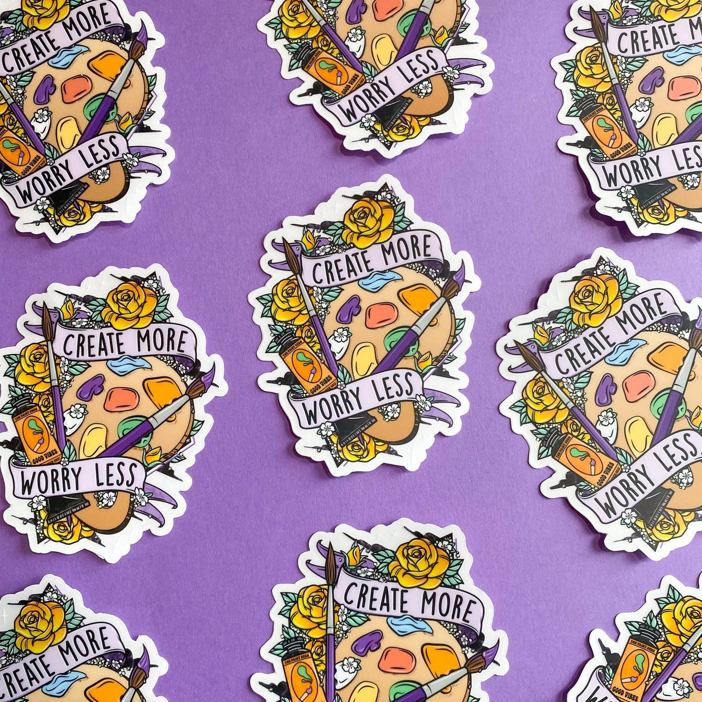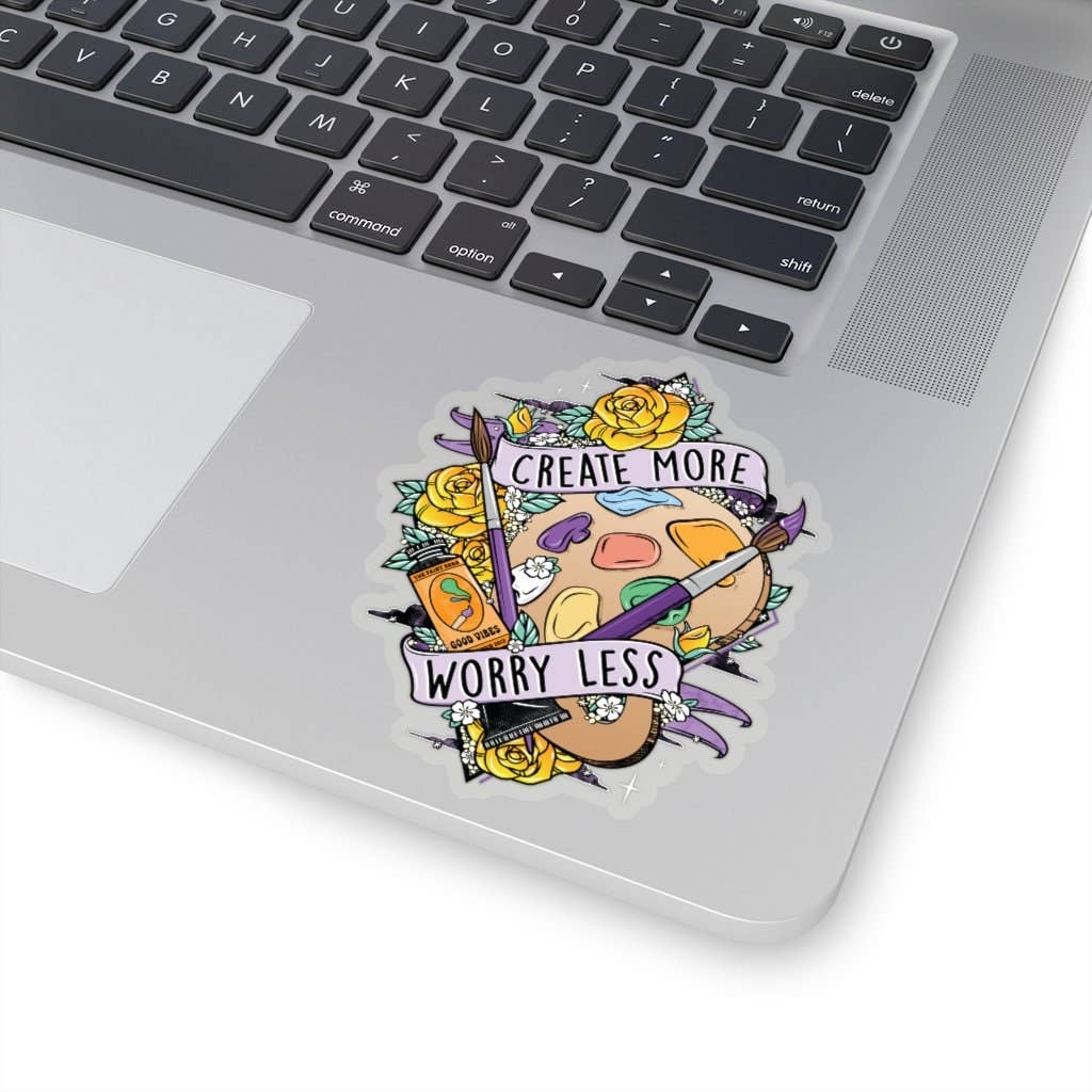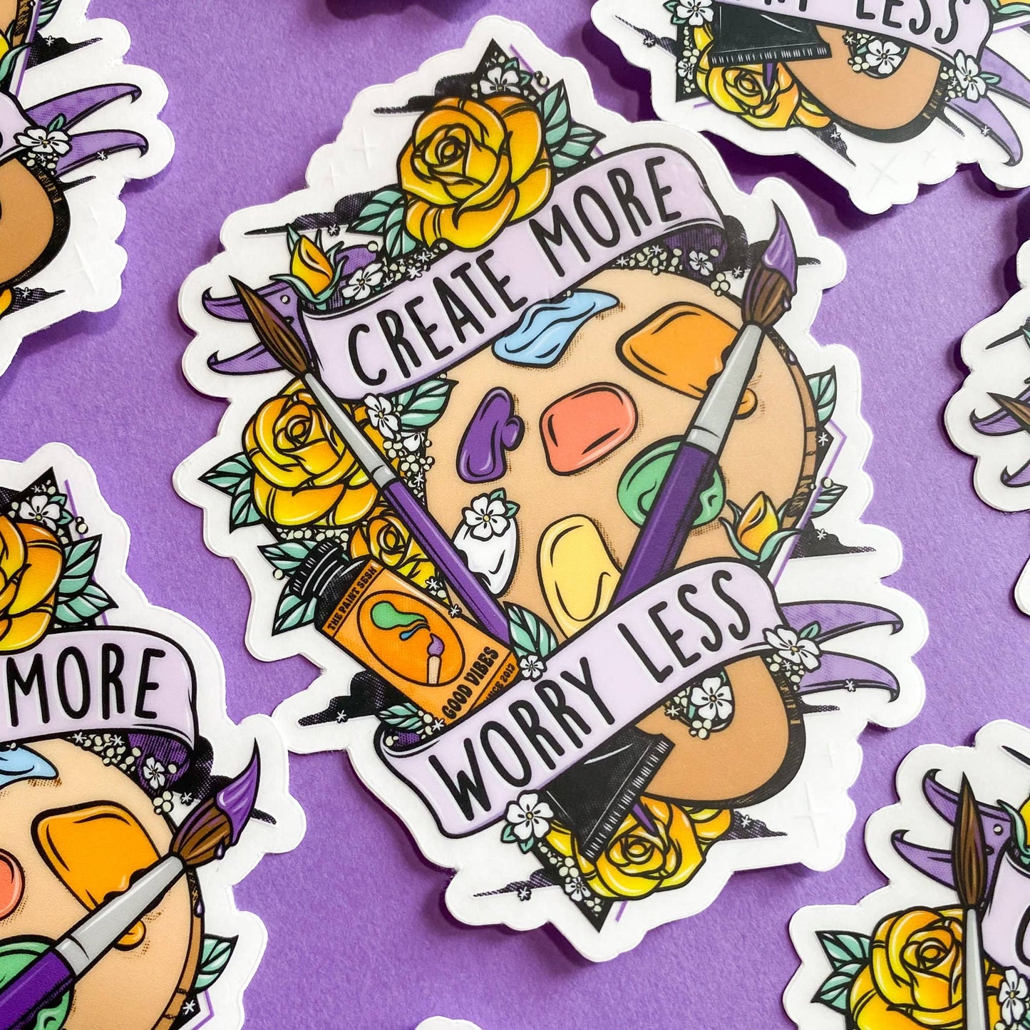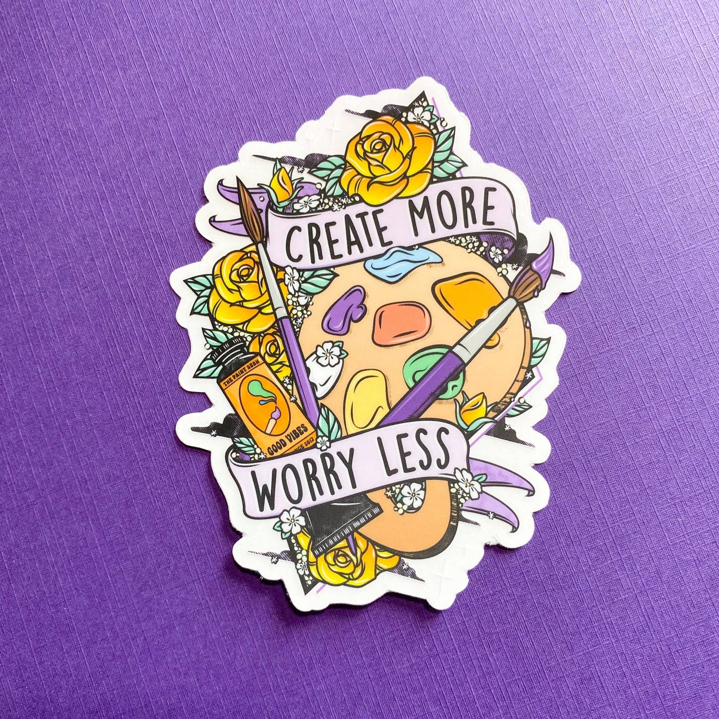 Create More Worry Less Sticker Transparent Vinyl created by The Paint Sesh: