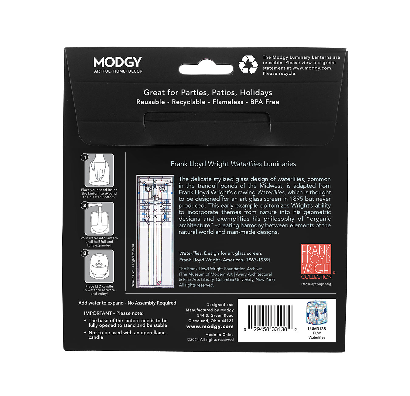 Create an artful candlelit effect indoors or out with a set of Modgy Luminaries. Just add water and drop in flameless water-activated LED candles to set the mood. Reusable and durable, they pop up for use and fold flat for space-saving storage. Includes 4 lanterns and 4 candles in every package.