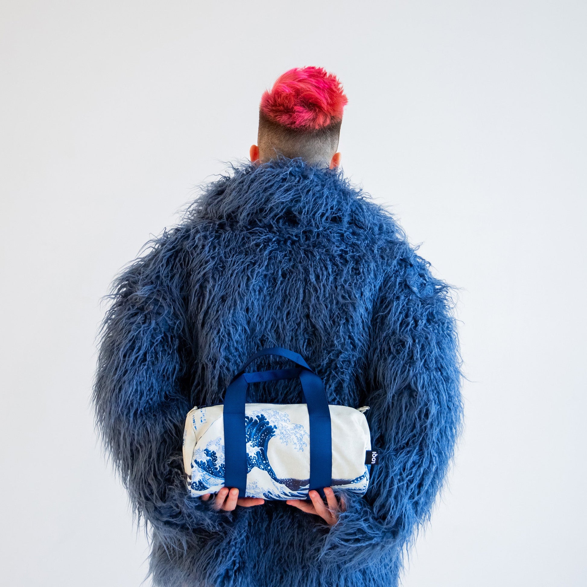 Oceanic Ode. Big blues. Wild Whites. Stormy Seas. Make a splash with Hokusai’s The Great Wave recycled Mini Weekender