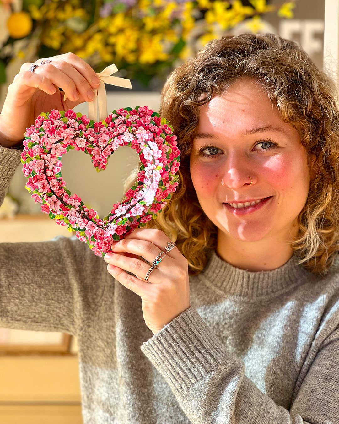 Mini Cherry Blossom Wreath Pop-Up Greeting Card