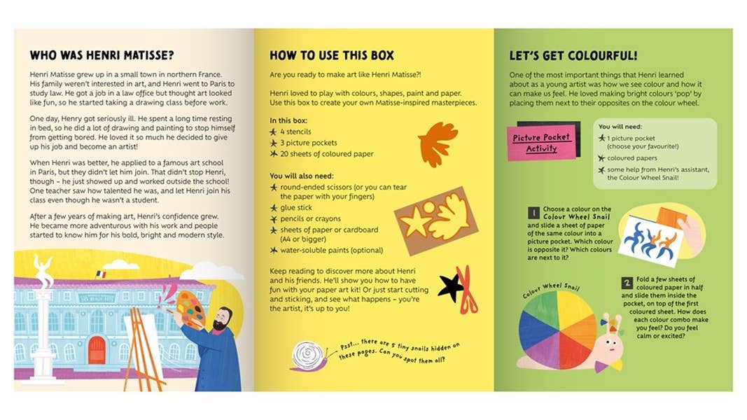 Let’s make a paper masterpiece! Join Henri and his friends as they embark on a series of arty adventures.