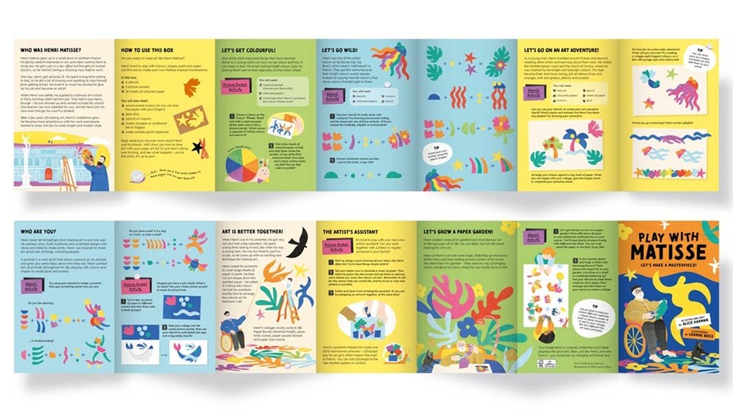 Make your own paper masterpiece with Play with Matisse, the first in a series of creative play kits for budding artists aged 5+. The kit includes a concertina that guides readers through simple step-by-step activities, starting with a simple color-focused exercise and progressing to a big collaborative project using found materials.