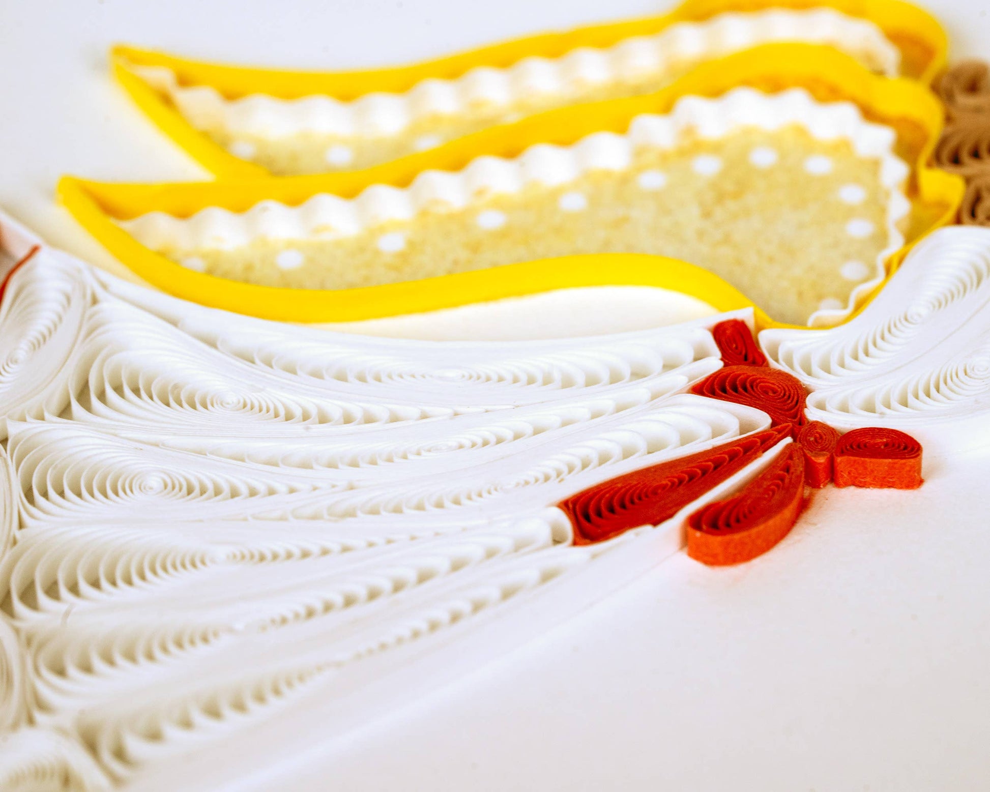 Hark the quilled herald angels sing! Enjoy this handcrafted Angel as she shares the good news of the savior's birth.
